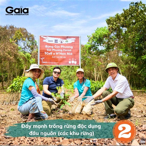 Năm 2025, Trung tâm Bảo tồn Thiên nhiên Gaia đã trồng xong 153.957 cây gỗ lớn trên diện tích 72,55ha tại 8 khu rừng đặc dụng đầu nguồn khắp cả nước bao gồm Vườn Quốc gia Cúc Phương (Ninh Bình cũ), Vườn quốc gia Xuân Liên (Thanh Hóa), Khu Dự trữ thiên nhiên Phong Điền (Huế), Khu Bảo Tồn Thiên Nhiên Tà Kóu (Bình Thuận cũ), Khu Bảo Tồn Thiên Nhiên Văn Hóa Đồng Nai, Vườn Quốc gia U Minh Hạ, Rừng phòng hộ ven biển Đê Biển Tây (Cà Mau), và Nông trường Mùa Xuân (Hậu Giang cũ).