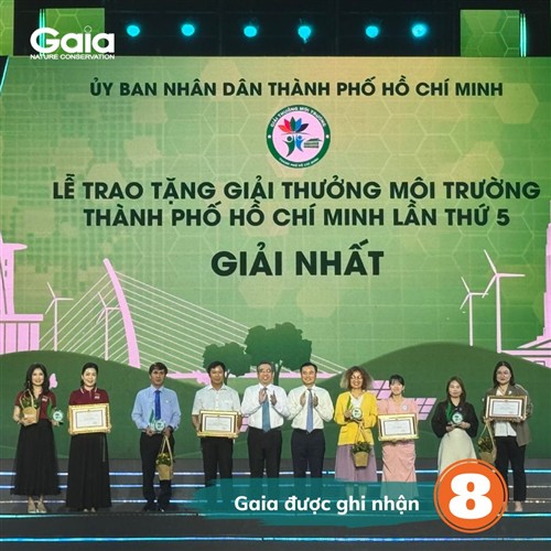 Trong ảnh, bà Huyền Đỗ, Nhà sáng lập & Giám đốc Trung tâm Bảo tồn Thiên nhiên Gaia (áo vàng) và cô Dung Phan, Cán bộ Gây quỹ và Phát triển chương trình Gaia nhận Giải nhất tại Lễ trao tặng Giải thưởng Môi trường TP. Hồ Chí Minh lần thứ 5. Đây là cột mốc không chỉ dành cho một tổ chức, mà cho cả những cánh rừng, cộng đồng và con người đã cùng Gaia đi suốt chặng đường xanh hóa thiên nhiên. Giải thưởng là sự khẳng định rằng những việc làm kiên trì, âm thầm vì môi trường hoàn toàn có thể tạo ra giá trị lớn lao và lâu dài.