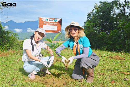 i diện Gaia trao giấy chứng nhận góp rừng cho Hoa hậu Lương Thùy Linh và đại diện LASHE Superfood