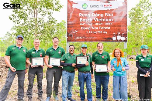 i diện Gaia trao giấy chứng nhận góp rừng cho đại diện Bosch