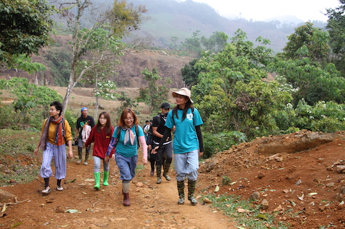 H’Hen Niê cùng cán bộ Gaia, khu BTTN Xuân Liên chụp hình lưu niệm bên cây Sa mu dầu nghìn tuổi - Thần mộc rừng Xuân Liên