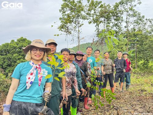 Bà Huyền Đỗ - Giám đốc & Nhà sáng lập TTBTTN Gaia chụp ảnh cùng người dân
