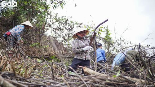 Người dân hỗ trợ nhau phát quang bụi rậm