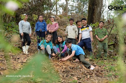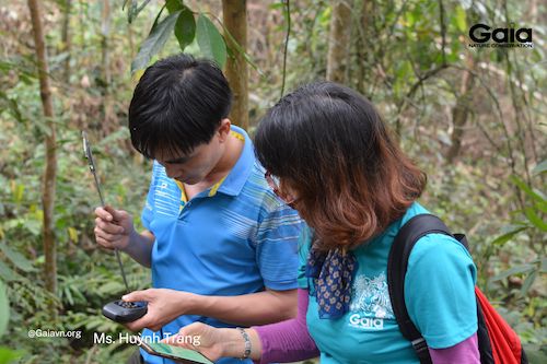 Cán bộ Gaia và Khu Bảo tồn Thiên nhiên Xuân Liên thực hiện giám sát cây sau khi trồng. Cây sẽ được chăm sóc và giám sát trong 4 năm liên tiếp.