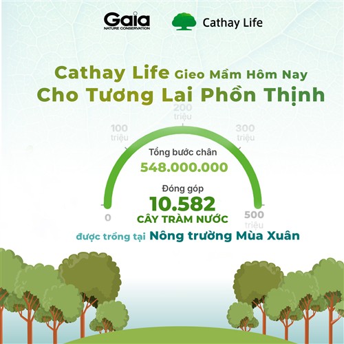 Tháng 09.2025, Cathay Life Việt Nam và Trung tâm Bảo tồn Thiên nhiên Gaia đã khởi động chương trình “Gieo mầm cây từ những bước chân 2025”, đánh dấu năm thứ 3 liên tiếp hai bên đồng hành cùng nhau trên hành trình gieo trồng những mầm xanh cho rừng Việt Nam. Trong 6 tuần, chương trình đã tích lũy được 548 triệu bước chân, quy đổi thành 10,582 cây Tràm nước được trồng tại Nông trường Mùa Xuân (Hậu Giang cũ)..jpg)