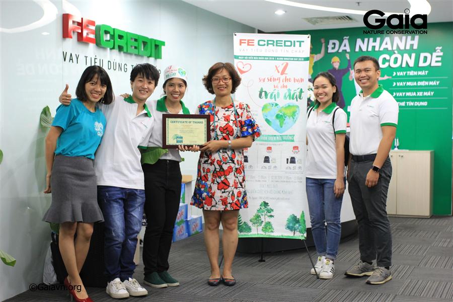 Đặc biệt, với mỗi người tham gia hiến máu đợt này, FE CREDIT đã ủng hộ 60.000 đồng cho Trung Tâm Bảo Tồn Thiên Nhiên Gaia nhằm thực hiện các hoạt động bảo vệ thiên nhiên và môi trường sống.