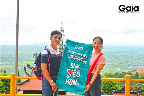 Vào buổi chiều, cả đoàn cùng trải nghiệm rừng lá rộng bán rụng lá nhiệt đới, đi cáp treo lên đỉnh núi và tham quan chùa Linh Sơn ẩn mình trong rừng Tà Kóu kỳ vĩ. Đắm chìm trong không gian xanh mát, với thảm thực vật đa dạng của núi Tà Kóu, cả đoàn ai nấy đều phấn khởi, mong rằng khu đồi cát trống trải kia mai sau cũng sẽ rợp bóng cây, chim chóc chuyền cành ríu rít vui tai.