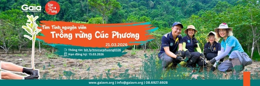 Trung tâm Bảo tồn Thiên nhiên Gaia kêu gọi những trái tim yêu thiên nhiên cùng Chung sức trồng rừng, góp sức tái sinh màu xanh tại Vườn Quốc gia Cúc Phương (Ninh Bình) – những cánh rừng đầu nguồn quý giá, nơi giữ nguồn nước, chắn lũ và là mái nhà của muôn loài.